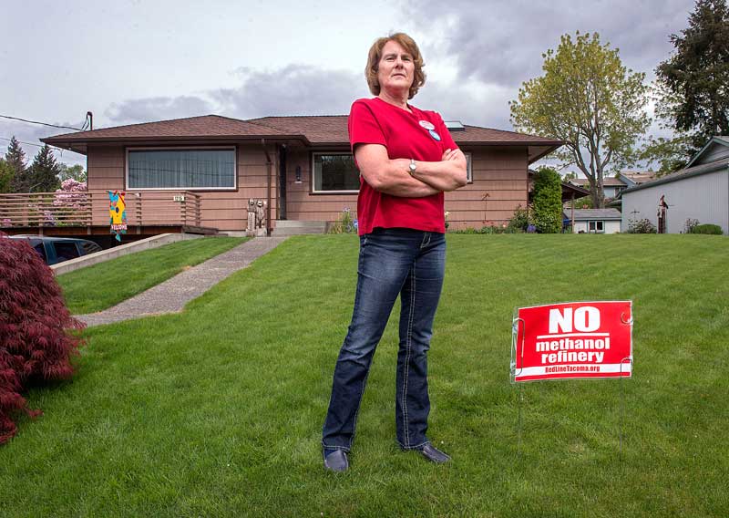 Linda Miller, a 68-year-old retiree with a well-kept lawn, kept a tell-tale red “No Methanol” sign in her front yard in the months leading up to Northwest Innovations Works’ decision to abandon the proposal. She also became a regular at heated Port of Tacoma meetings whenever the methanol plant was discussed.