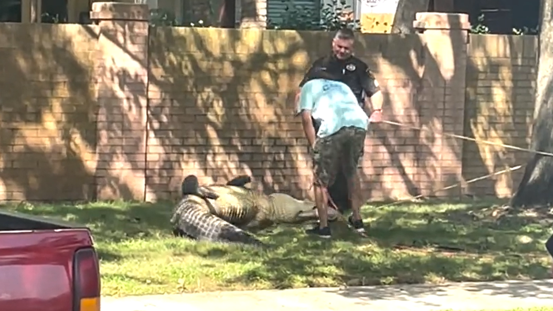 Chunky alligator draws a crowd as it lumbers through Texas neighborhood, video shows