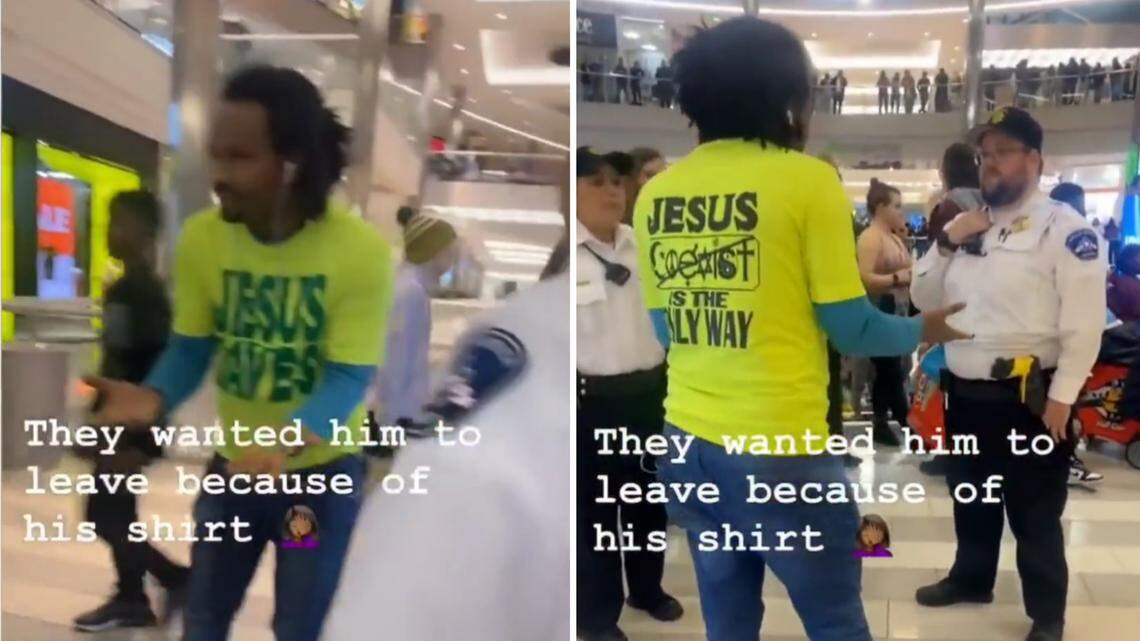 This story was originally published January 18, 2023 at 11:23 AM with the headline "Security guard calls mall visitor’s ‘Jesus Saves’ shirt offensive, Minnesota video shows."