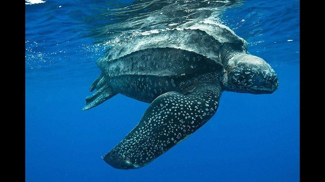 Leatherbacks are the largest species of sea turtle, growing to 6 feet in length and up to 1,000 pounds, experts say. They can live as long as 50 years. Scott Benson/NOAA