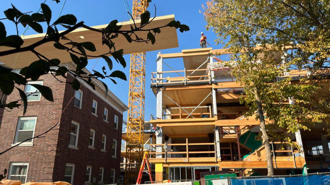 “You can build much faster with mass timber than with any other material,” Faler said. “It is put together offsite and transported to the job site, you just gotta put it together like Lincoln Logs, you just put the pieces together and go up, up, up.”